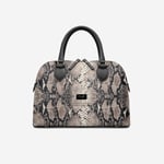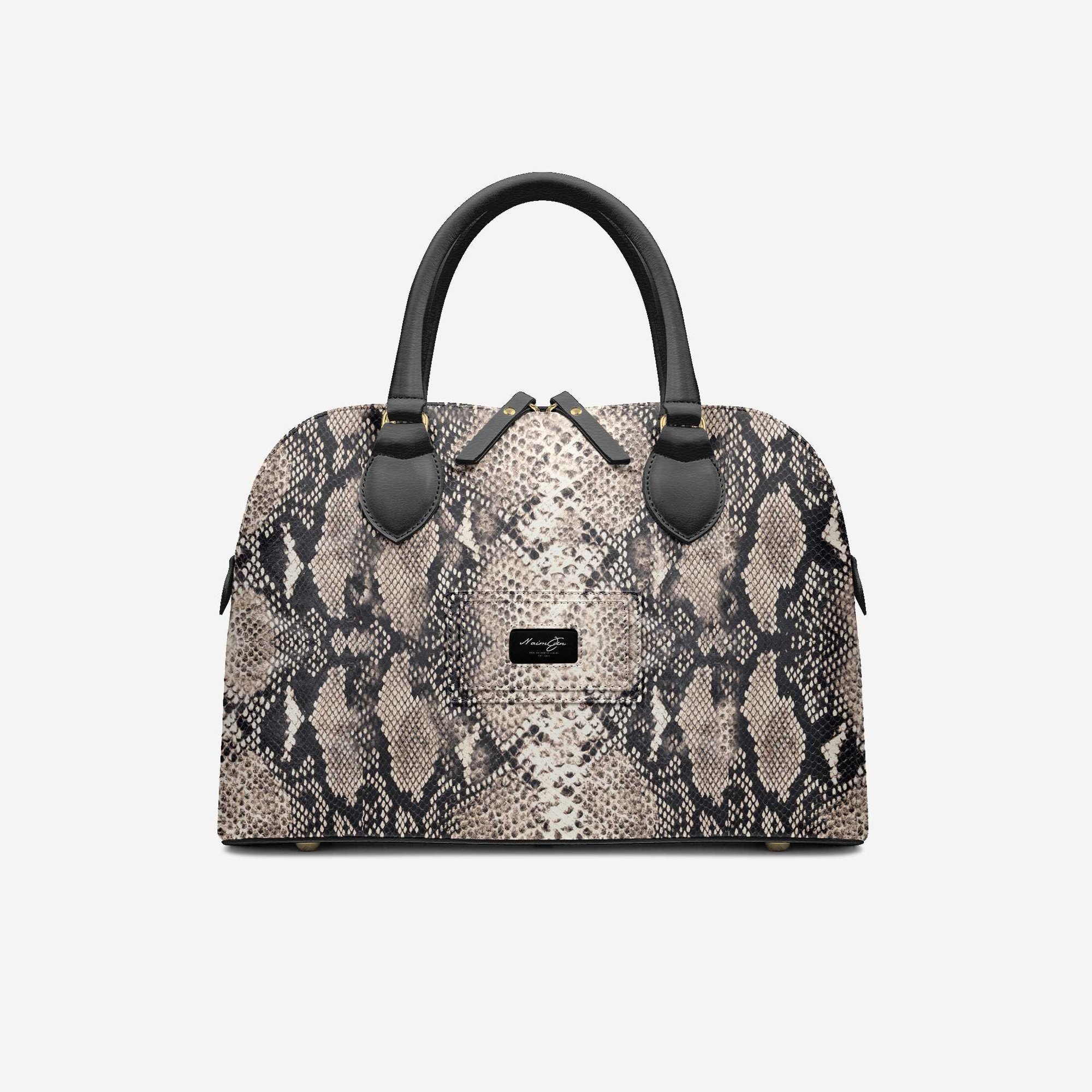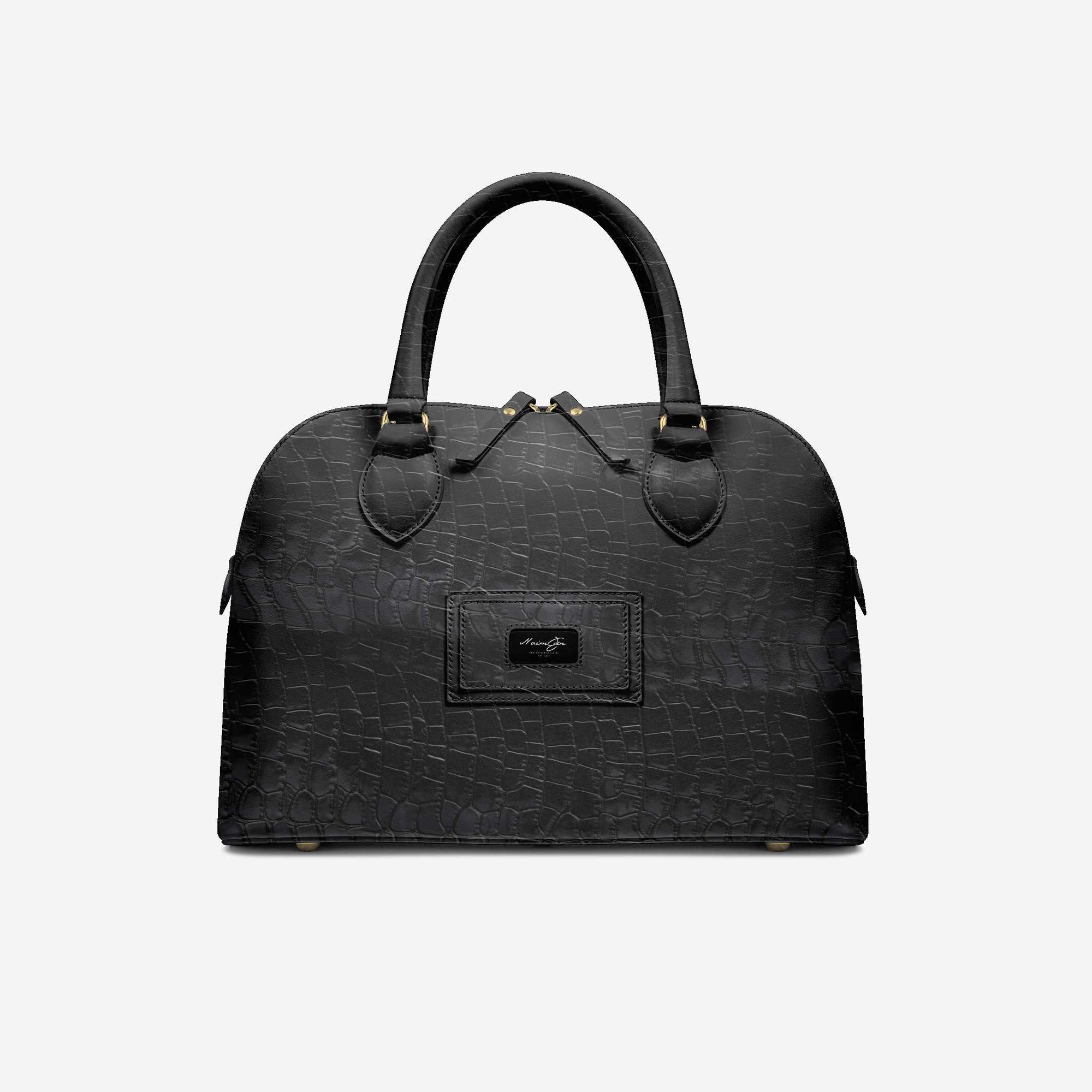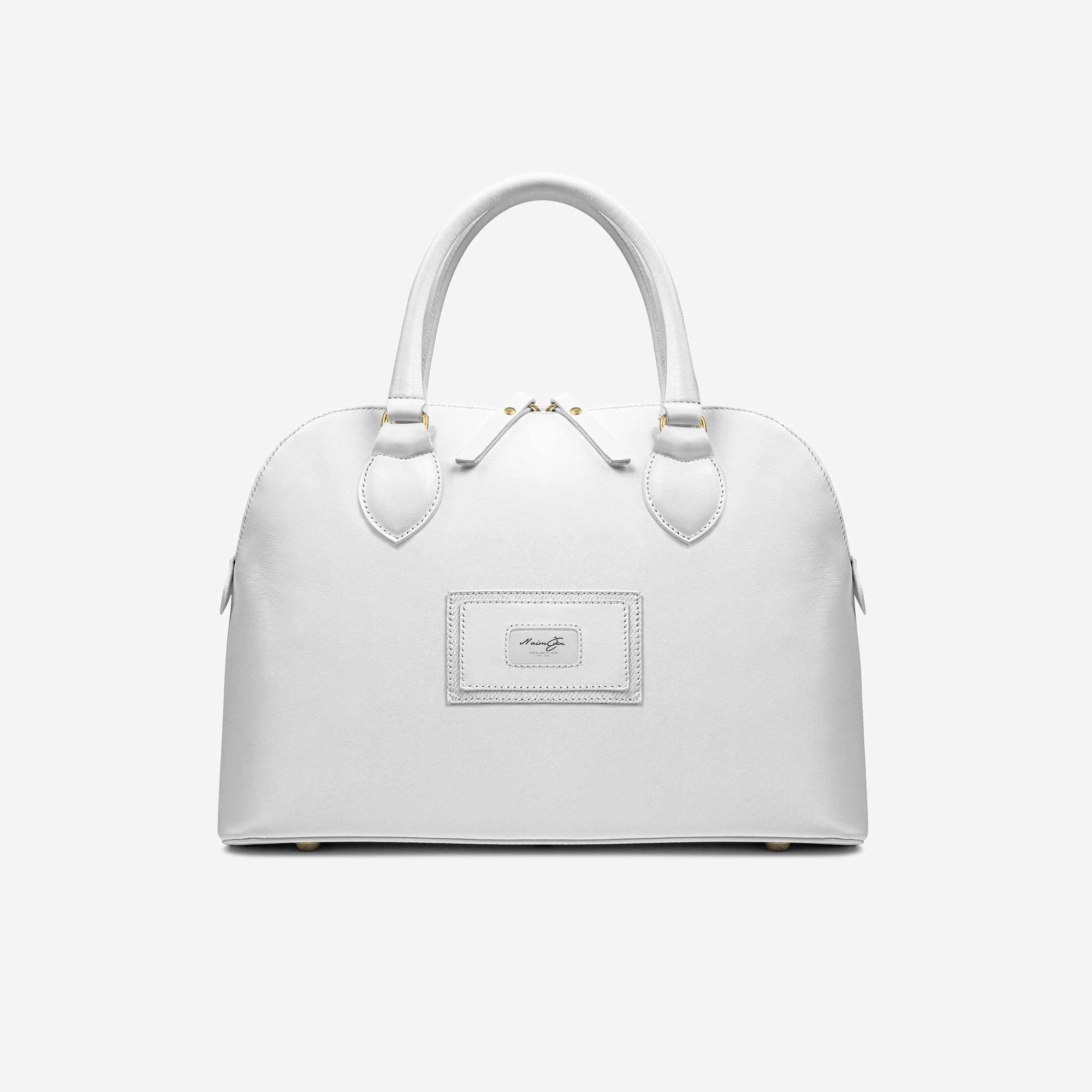 Our top-end "Matana" luxury bag with a chic, classic bowler shape, perfect for day and night. It is capacious, equipped with two handles, and features two rectangular details on the front with our customized NAIM Eden™ logo.