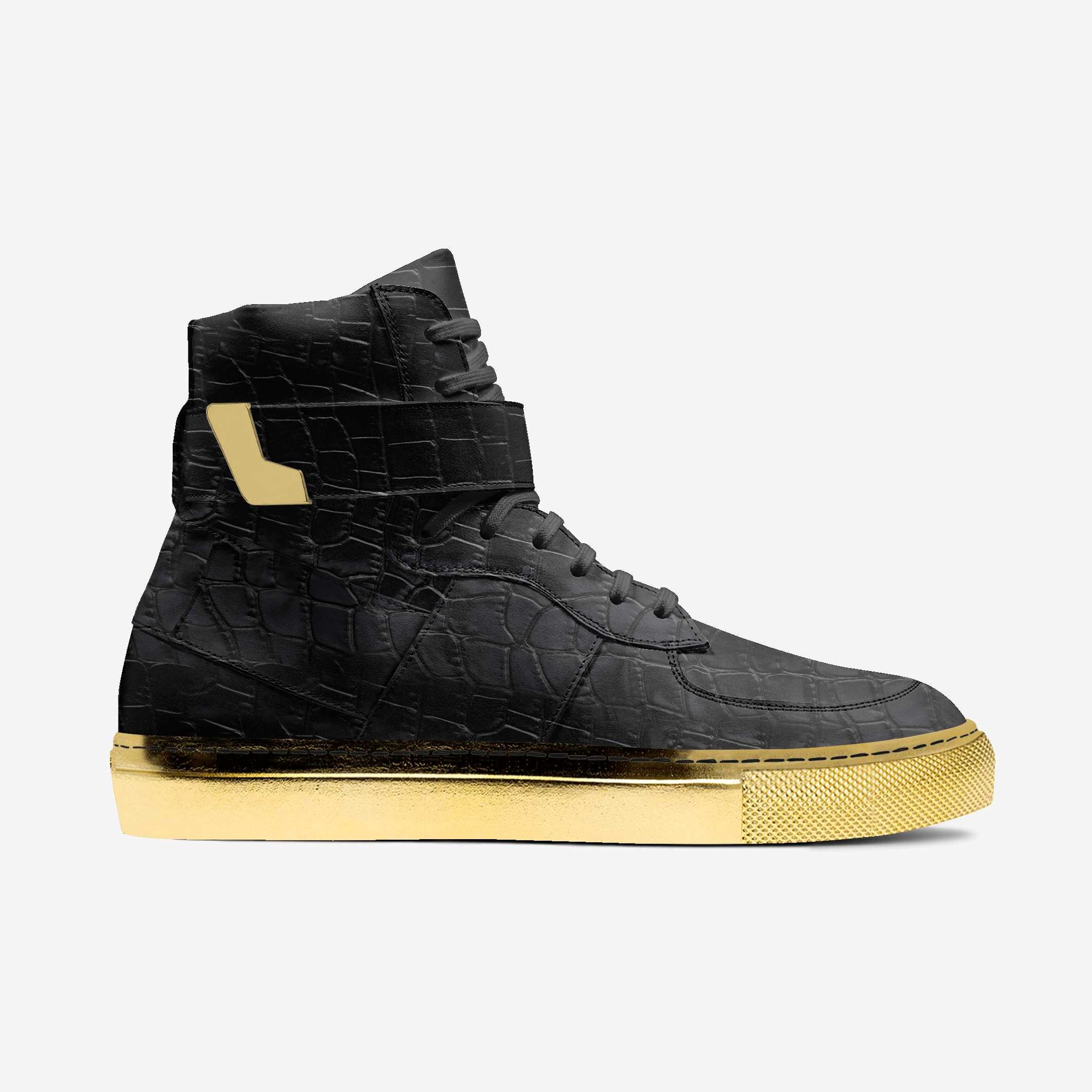 Our "Province 732" luxe unisex sneakers come with a classic high-top silhouette. It features a super-soft tongue, padded shaft, standard lacing, and an ankle strap with a gold-plated metal insert. The rubber sole ensures comfort and support.