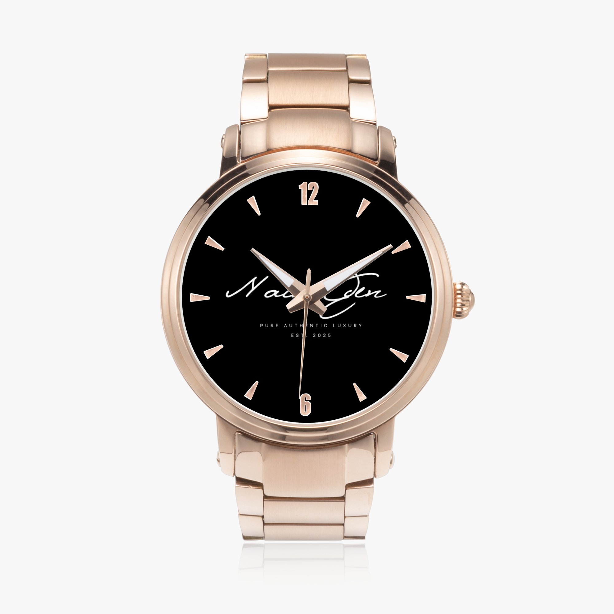 Our classic "Ahavah" analogue luxury watch will make every second count! Running by automatic mechanical movement, without battery support, enjoy its high-density stainless steel body, accurate timing, and folding clasp suitable for business and casual occasions.